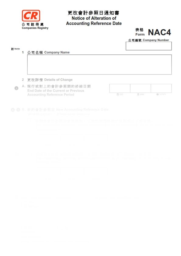 2016年香港表格NAC4 – 更改會計參照日通知書