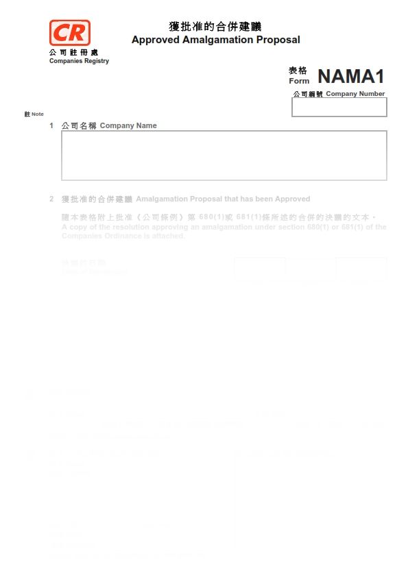 2016年香港表格NAMA1 – 獲批准的合併建議