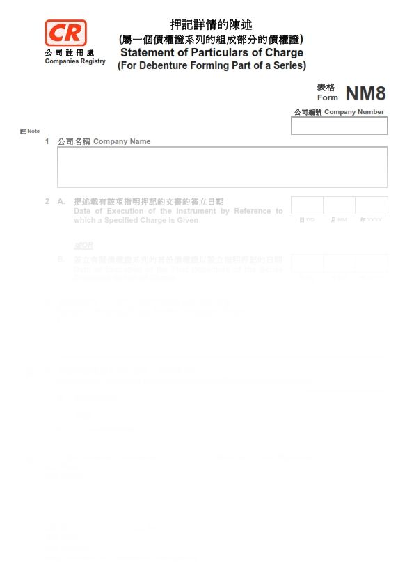 2016年香港表格NM8 – 押記詳情的陳述(屬一個債權證系列的組成部分的債權證)