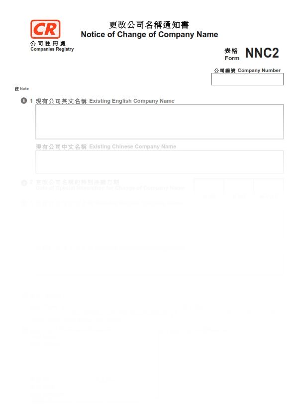 2016年香港表格NNC2 – 更改公司名稱通知書 (樣本)