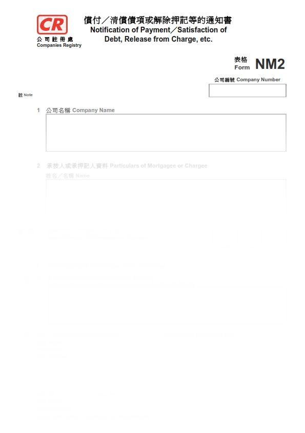 2016年香港表格NM2 – 償付╱清償債項或解除押記等的通知書